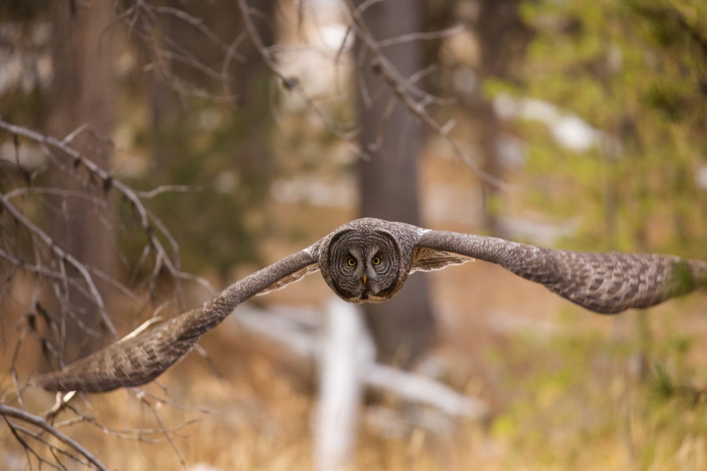 Anyways, back to the topic at hand. My Great Grey Owl addiction. The first time I saw a GGO was in Yellowstone in May of 2016. It flew up from a pocket meadow next to the road and landed high in a tree. I couldn’t stop and had only a brief sighting of it. I carried on as I assumed owls were skittish and wouldn’t stick around. It wasn’t until a few years later when I was chatting with a fellow wildlife photographer friend that they mentioned that GGO’s can actually be photographed if you are quiet and respectful. A few years later, I would photograph my first Great Grey and since then, for more than 5 years I have been absolutely addicted to wanting to spend all my time in their presence. I had been obsessed with other animals, but not like this. It was worrying…